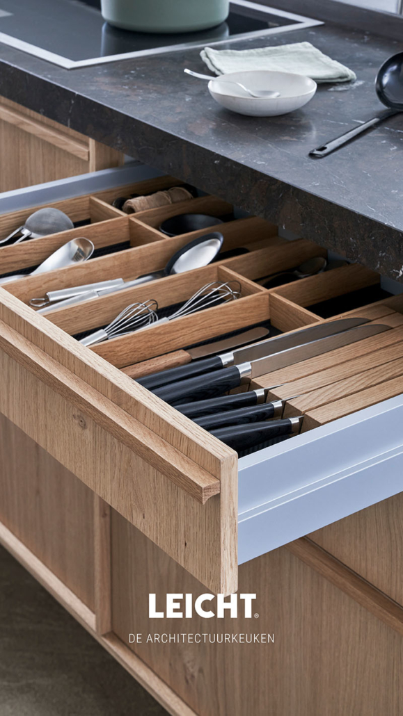 Outre son esthétique exceptionnelle, le modèle Kyoto de LEICHT se distingue par sa fonctionnalité intelligente. Chaque détail est pensé pour offrir une expérience culinaire optimale. Les armoires et les tiroirs offrent un espace de rangement généreux et bien organisé, permettant de garder tous les ustensiles et les provisions à portée de main. Les systèmes d’éclairage intégrés, tels que les éclairages LED, créent une atmosphère chaleureuse et mettent en valeur les éléments clés de la cuisine. - Des solutions de rangement innovantes :